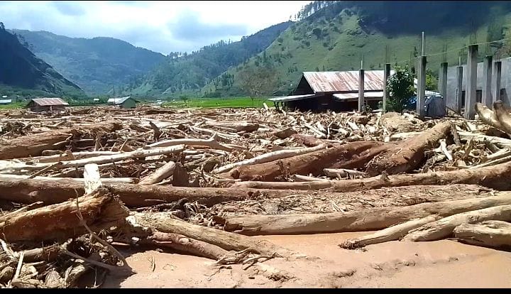 Dari penelusuran awak media di lokasi banjir dan tanah longsor, terlihat bentuk gelondongan kayu yakni bekas di tebang yang memakai mesin Sinso, dan bekas potongan yang sudah lama dipotong.