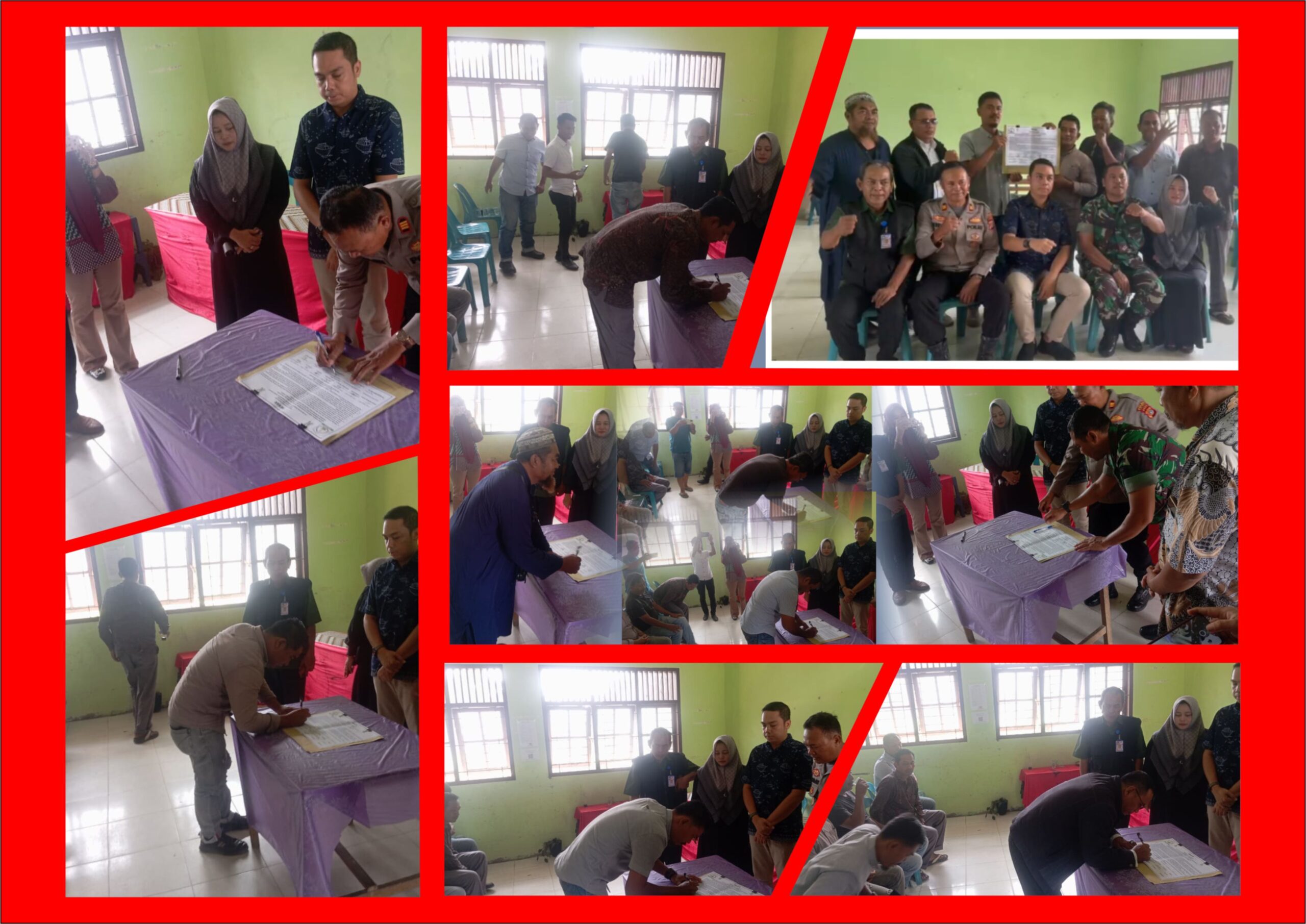 Guna mewujudkan pesta demokrasi yang damai di Kampung (Desa *Red) Perdamaian di tahun 2025, Camat Kota Kualasimpang, Dr. Cakra Arbas, SHI, MH, menggelar Ikrar Bersama 7 orang Calon Datok Penghulu (Kepala Desa *Red) di ruang Sekretariat Panitia Pemilihan Datok Penghulu (P2DP) Perdamaian, Kamis, (06/11/2025).