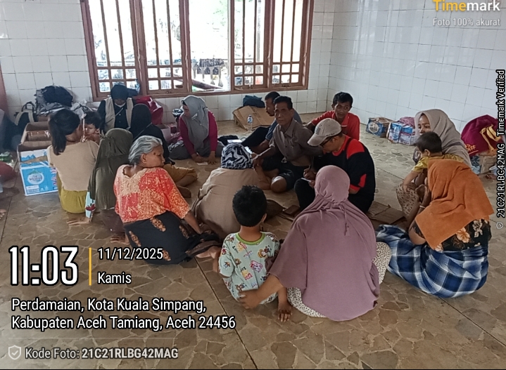 Tim medis sebanyak tujuh orang tersebut hadir di masjid masjid An-Nur Kampung (Desa * Red) Perdamaian melaksanakan pengobatan gratis bagi para korban banjir, Kamis (11/12/2025).